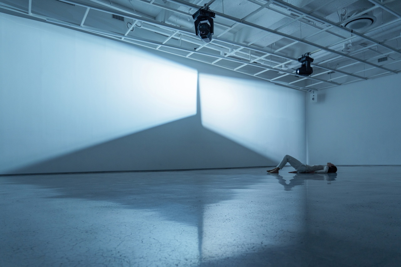 권희수, 〈코어〉 퍼포먼스 ⓒ이현석(이하 상동). 퍼포머 전보람. 권희수 작가의 〈코어〉는 사운드 인스톨레이션 전시인데, 관객은 한 시간가량의 시간 동안 전시장을 체류하며 사운드를 듣는다. 무언가 가시적인 것이 없다. 곧 전시장은 텅 비어 있다. 하지만 그 텅 빔을 가장 잘 반향하는 것이 곧 사운드임은 분명하다(는 점은 역설적이다). 여기서 퍼포먼스는 연장된다. 퍼포머로 선택된 세 명의 무용가는 춤을 추기보다 사물에 가까운 포즈와 이동을 꾀한다. 음악 일부를 명상으로써 함입하는 제스처로 볼 수도 있다. 여기서 퍼포먼스는 전시와 같은 시간을 공유한다. 그렇다면 전시를 다른 방식으로 감각하도록 유도하는 기제로서 퍼포먼스가 일어난다고 볼 수 있을까.