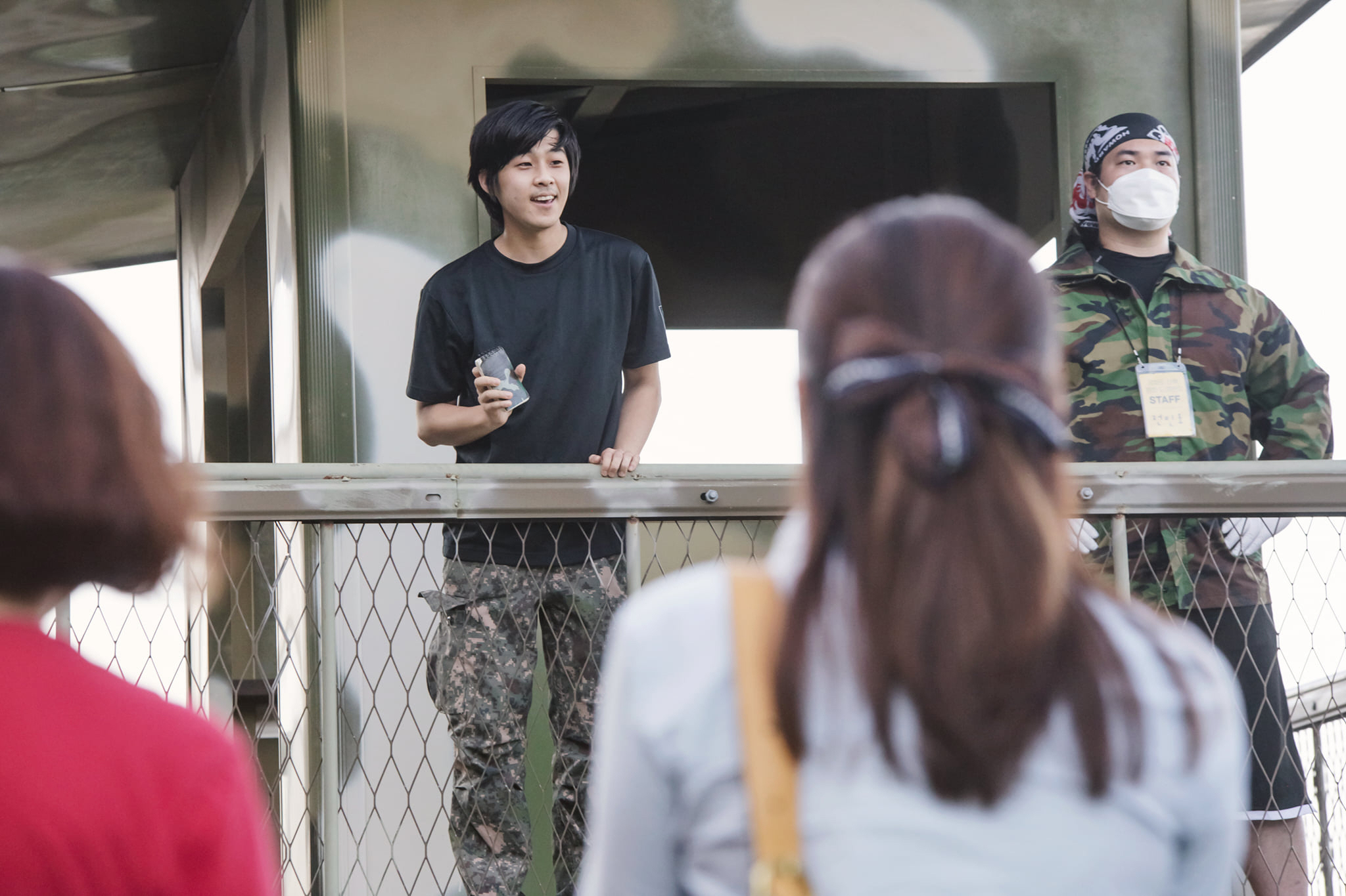 6.25 참전용사기념공원 초소 위에서, 사진 왼쪽부터 이도준, 전민호 배우.