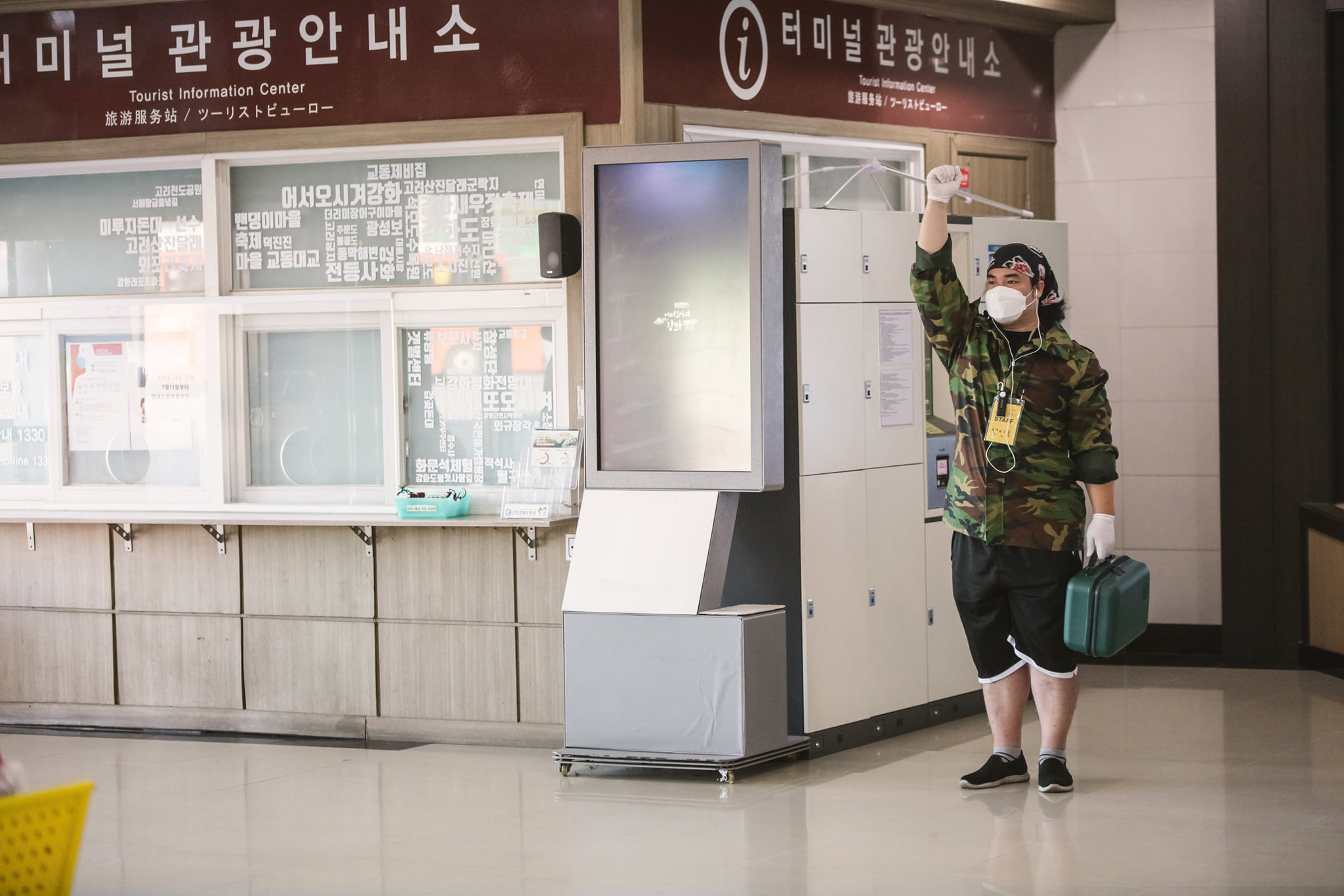 〈강화도 산책 : 평화 도큐먼트〉(2021). ⓒ김솔(이하 상동). 강화터미널에서 군인으로 분한 전민호 배우.