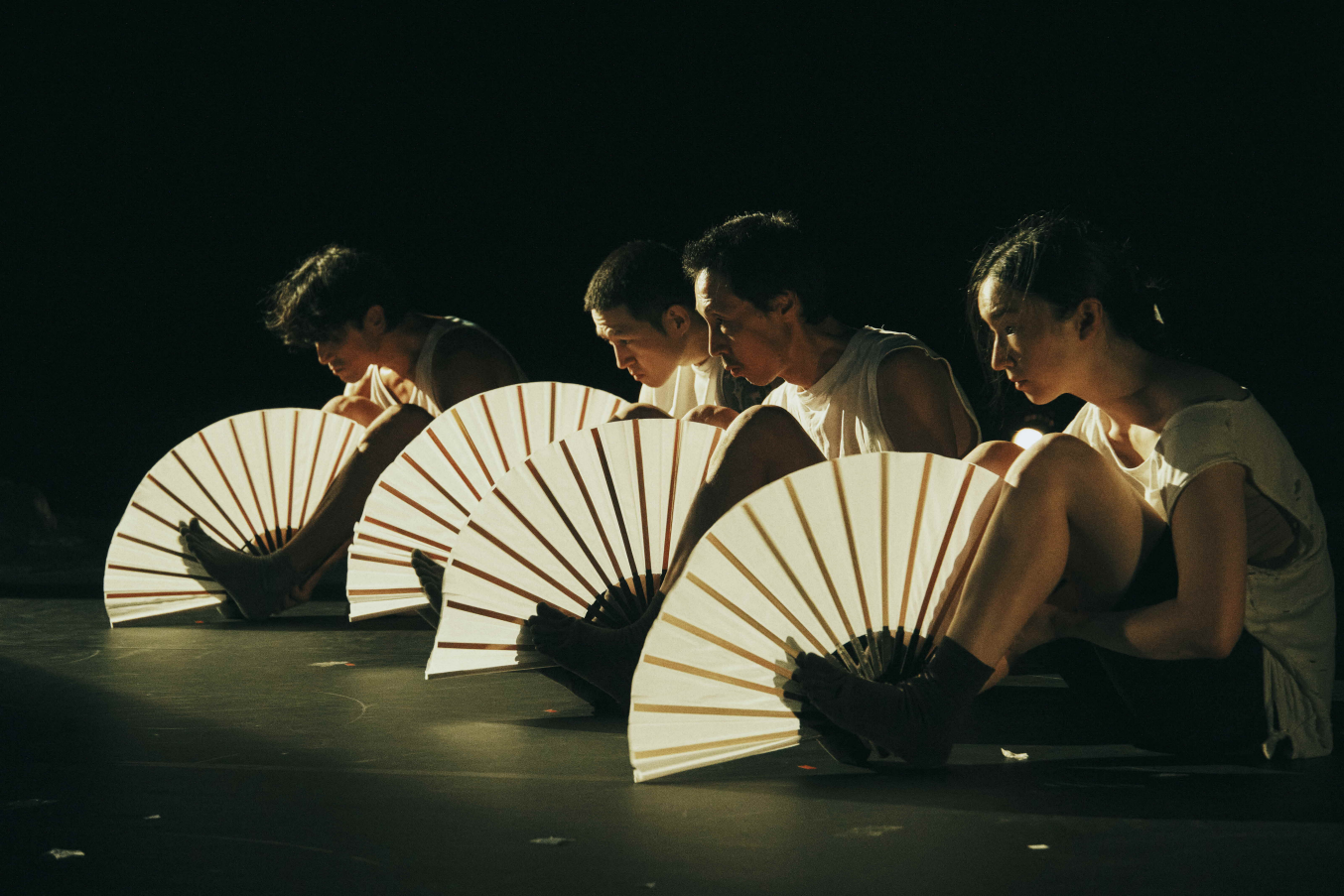금배섭은 숟가락을 붙이며 등장하는데, 그 틈에 다시 등장한 남녀는 종이를 앞에 펼쳐둔 채 각각의 “코끼리”가 되는데, 남자는 상의 긴 팔 부위를 몸에서 빼는 것으로, 여자는 자신의 긴 치마를 수그리며 앞으로 젖히고 두 손으로 걸어나가는 것으로, 그 형상에 근접한다. 이어 종이를 무대 사선으로 길게 늘어뜨려 펴며 잡아당기다 종이는 결국 찢어지는데, 남자가 남은 종이를 구겨 나간다면, 여자는 종이를 말아 나간다. 이어 또 다른 중심 오브제가 등장하는데, 바로 부채이다.
