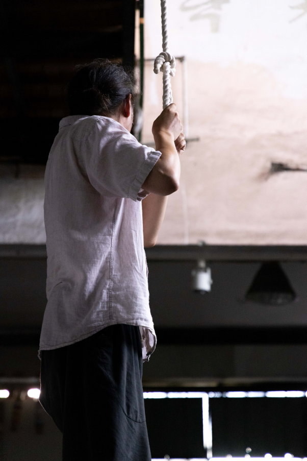 극단 해인의 〈이렇게 덥지만, 이렇게 더운데〉(이양구 작, 연출) ⓒ남산제작소[사진 제공=15분연극제](이하 상동). 극단 해인의 〈이렇게 덥지만, 이렇게 더운데〉(이양구 작, 연출)이 가리키는 현실은 이 공간에 대한 상상력을 기반으로 한다. 이 공간(에)의 현존을 재투자하여 공포와 두려움의 시간에 모두를 묶는다. 관객은 여전히 관객이지만, 이 상황을 배경으로서 체현하면서 그러하며, 관객의 의지를 초과하는 이 상황, 환경에 대한 몰입은 이곳이 정확히 어떤 곳인지의 전사, 배경, 정보가 거의 없는 제약적 상황을 기초로 한다. 몰입, 곧 자신에 대한 반향으로서 공간으로부터 자신으로의 수렴은 자신의 불완전성의 인식에 대한 다른 이름이며, 몰입은 이 환경의 비언어적 차원 자체와 관계 맺는 유일한 자신에 대한 불안과 공포로 현상된다.
